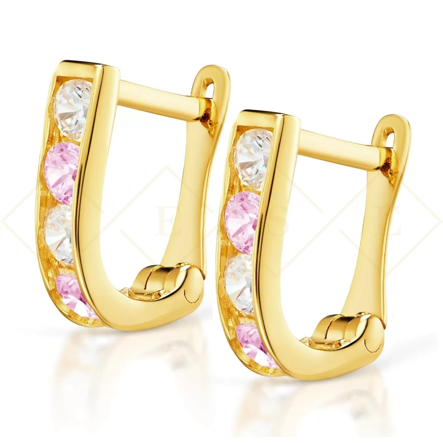Złote kolczyki Prostokąciki różowe pr. 333