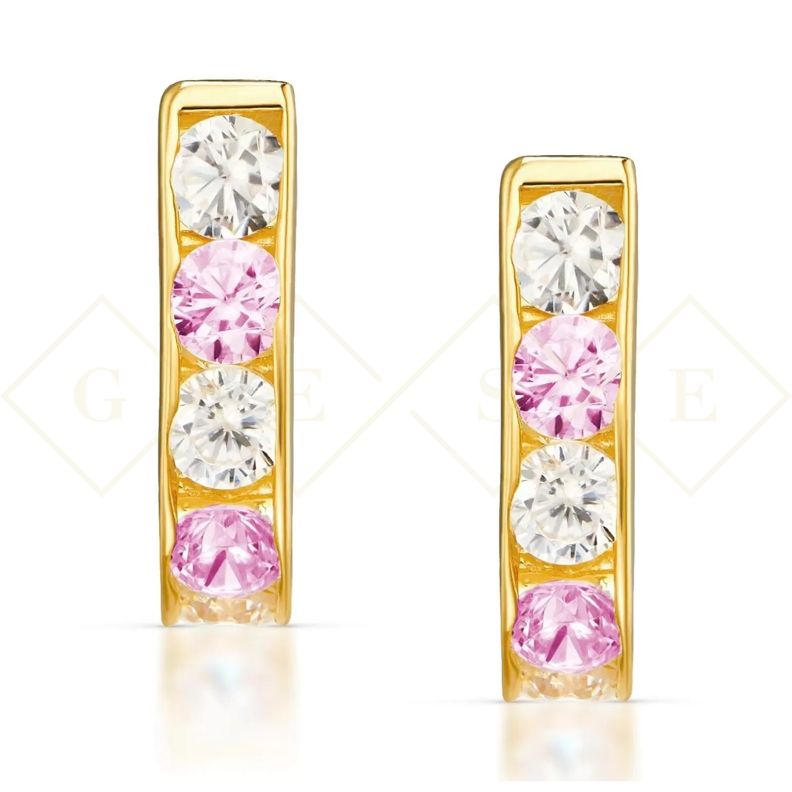 Bardzo prosta i elegancka biżuteria została ozdobiona białymi i różowymi kamyczkami.Doskonale nadają się dla małej i dużej damy.Zostały wyposażone w niezwykle funkcjonalne zapięcia typu angielskiego.