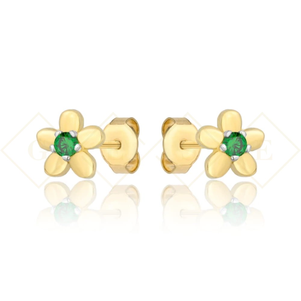 Złote kolczyki cyrkonie kwiatki zielone pr. 333