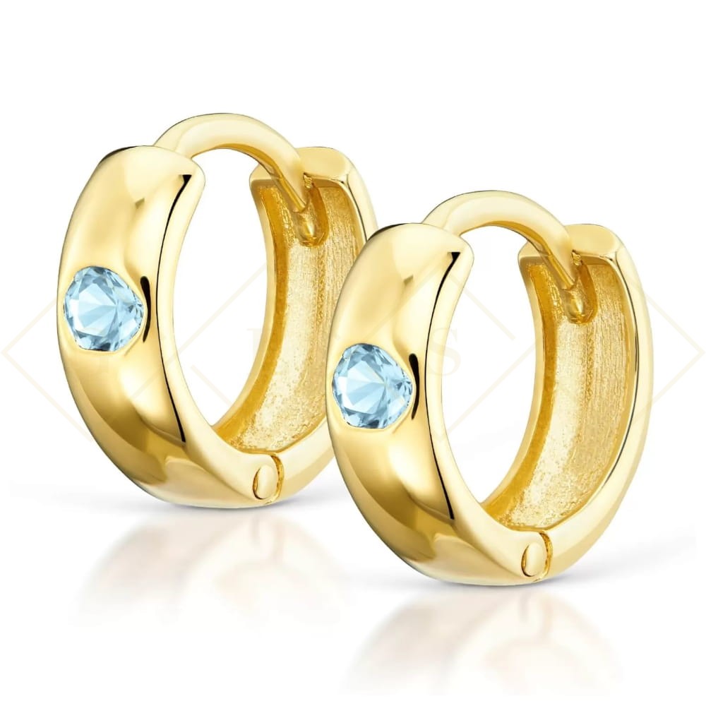 Złote kolczyki kółeczka błękitna cyrkonia pr. 333