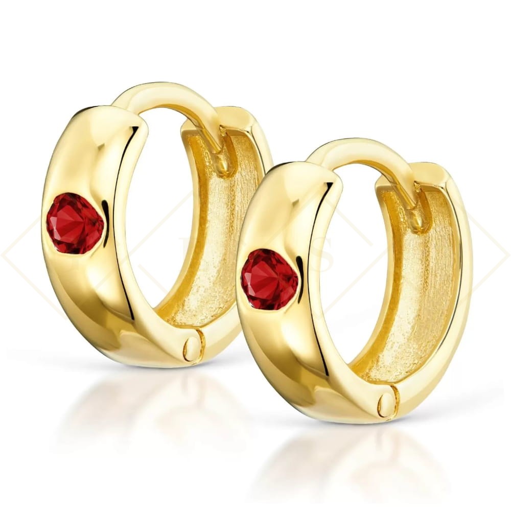 Złote kolczyki kółeczka czerwona cyrkonia pr. 333 1.338cz