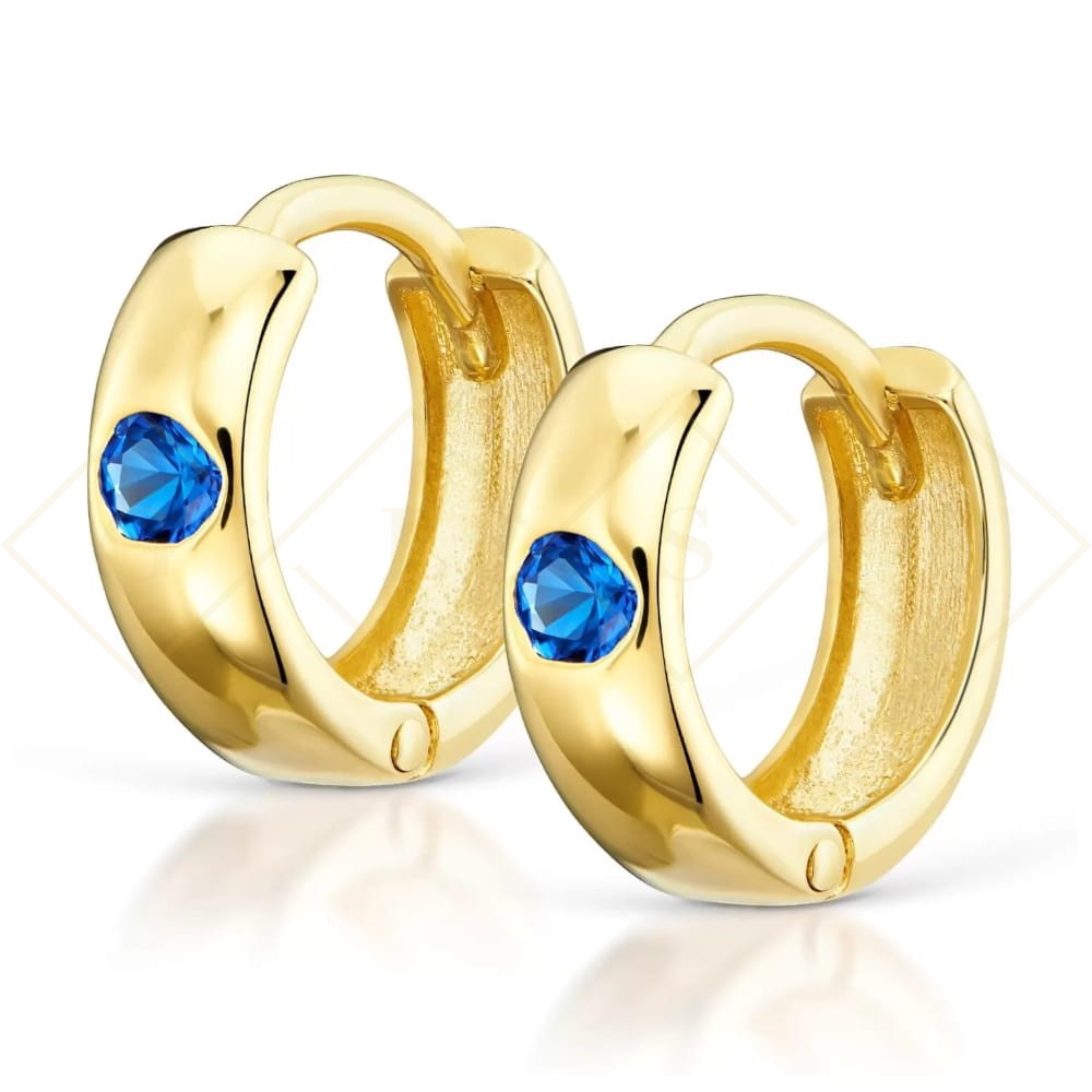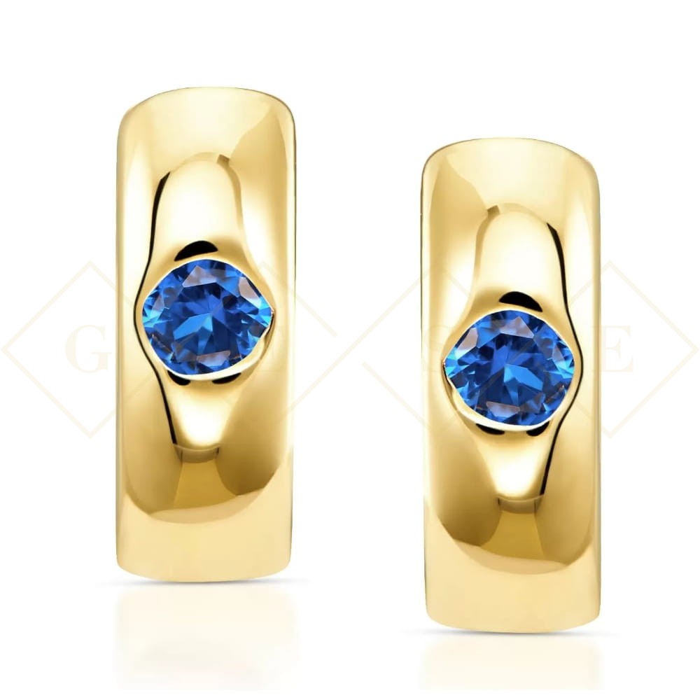 Złote kolczyki kółeczka niebieska cyrkonia pr. 333