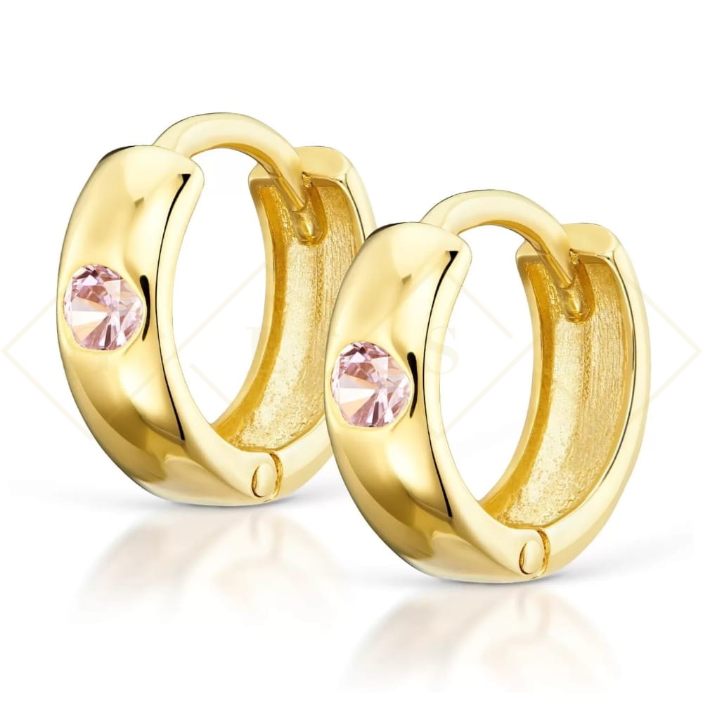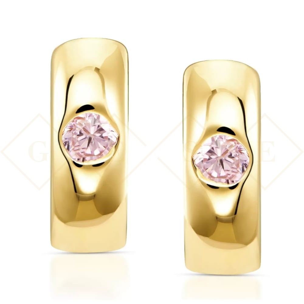 Złote kolczyki kółeczka różowa cyrkonia pr. 333