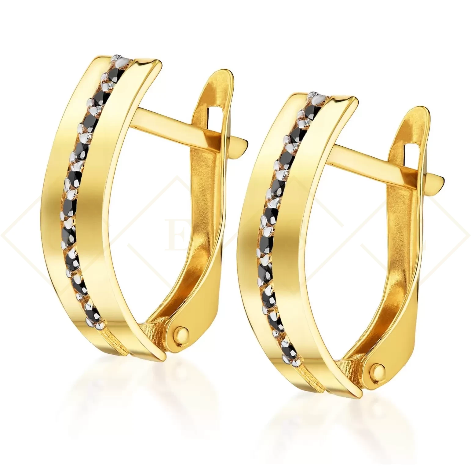 Złote kolczyki mona czarne kamienie pr. 333
