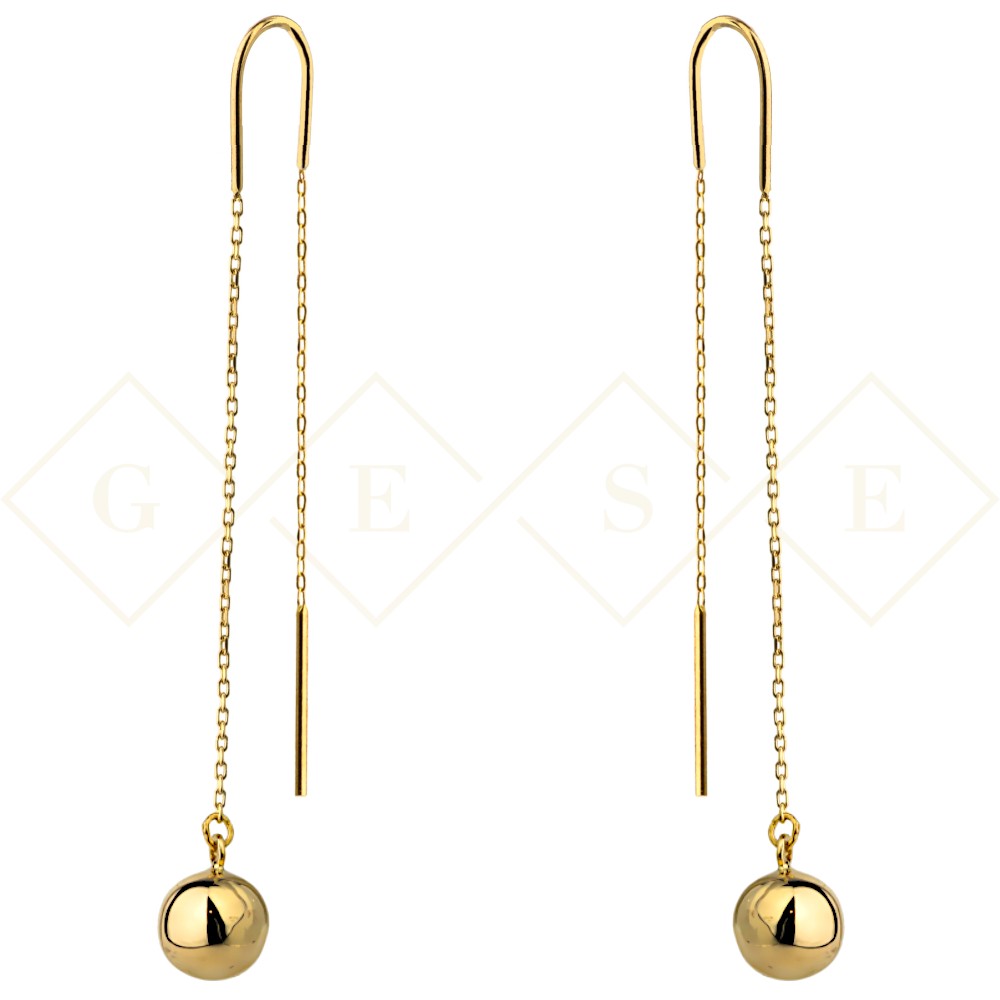Złote kolczyki przewlekane gładkie kulki na łańcuszku