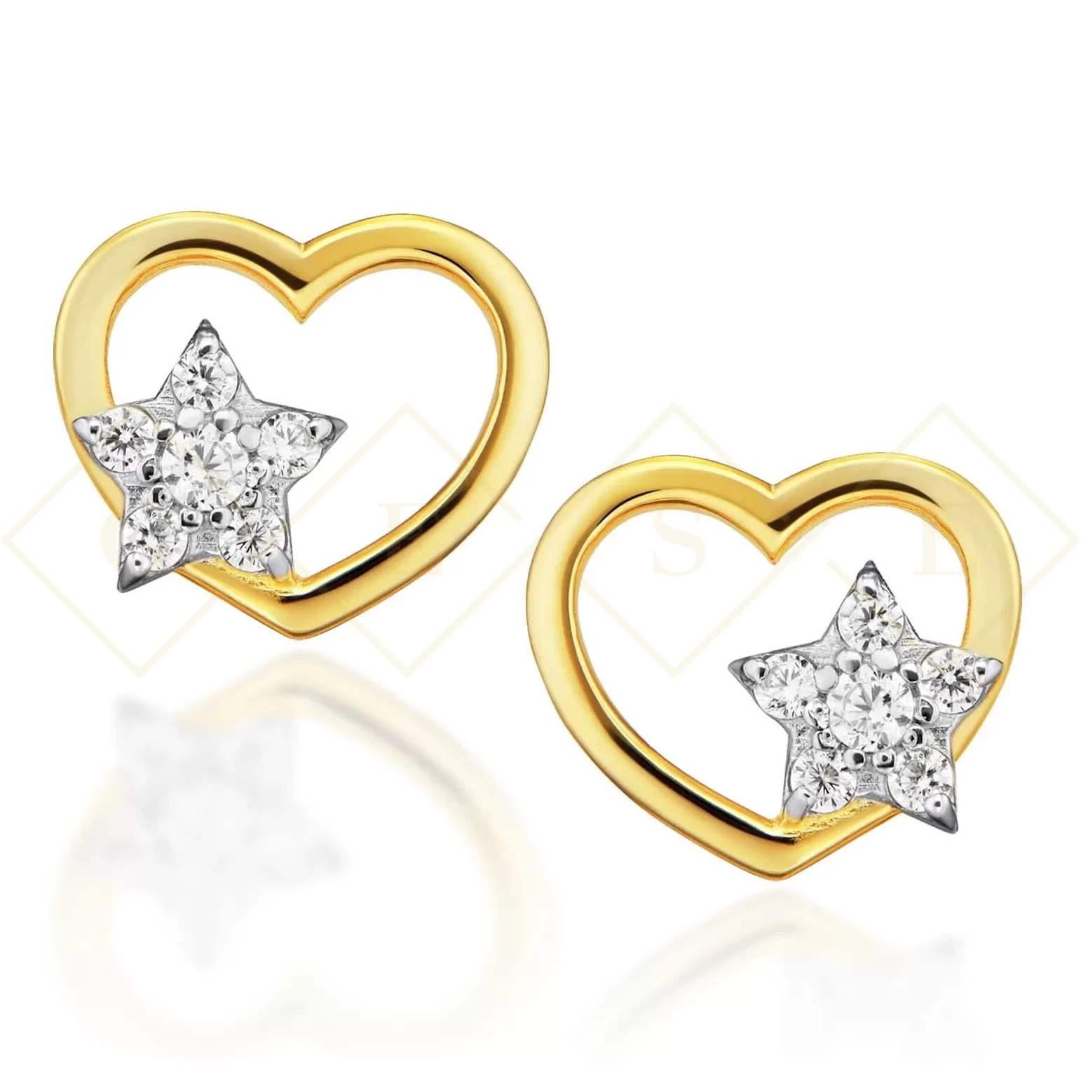 Złote kolczyki serca z gwiazdką pr. 333