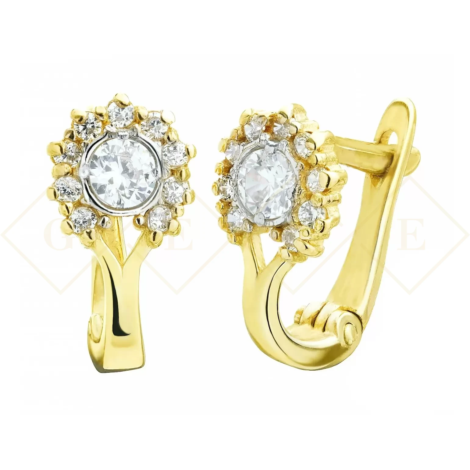 Wykonane z największą precyzją kolczyki zdobione kamieniem centralnym oraz mniejszymi białymi Cyrkoniami.Zapinane za pomocą bezpiecznego zatrzasku. Idealnie sprawdzą się jako prezent.