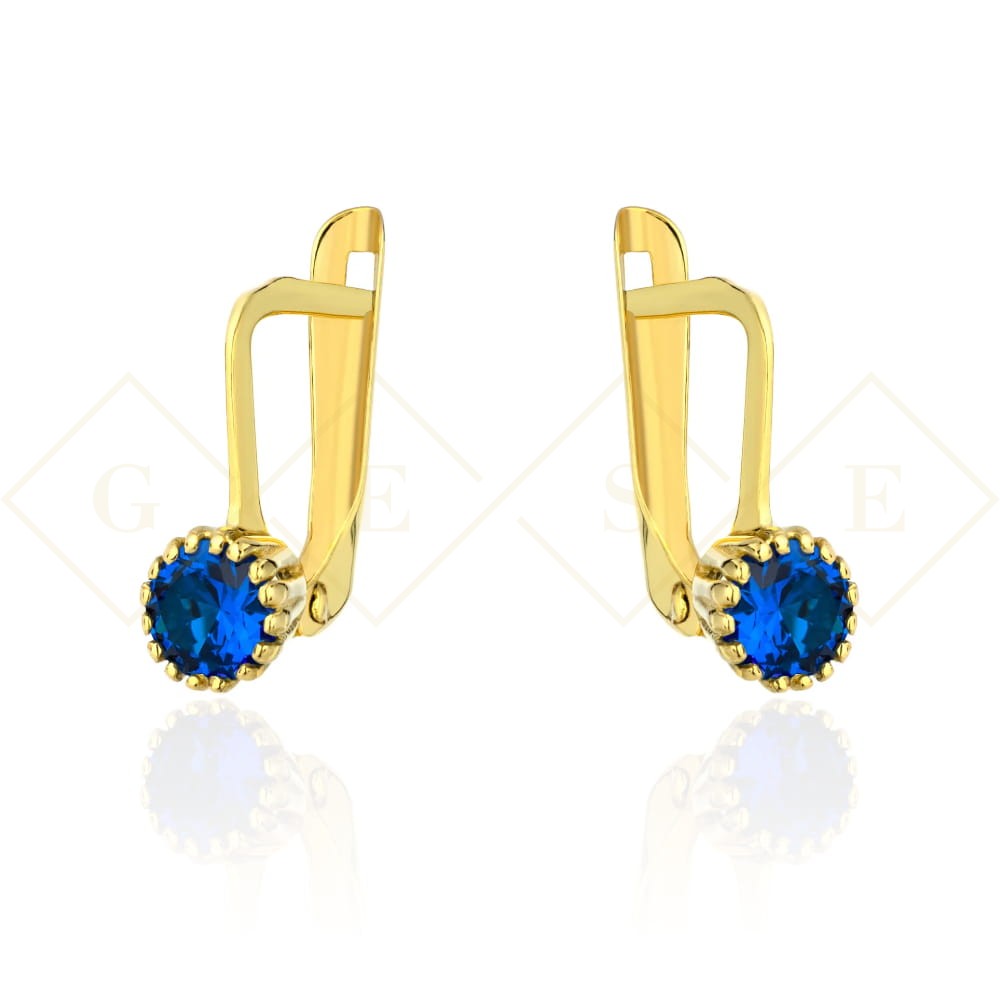 Złote kolczyki zdobione klasyczny wzór szafirowy kamień pr. 333 2.1171n