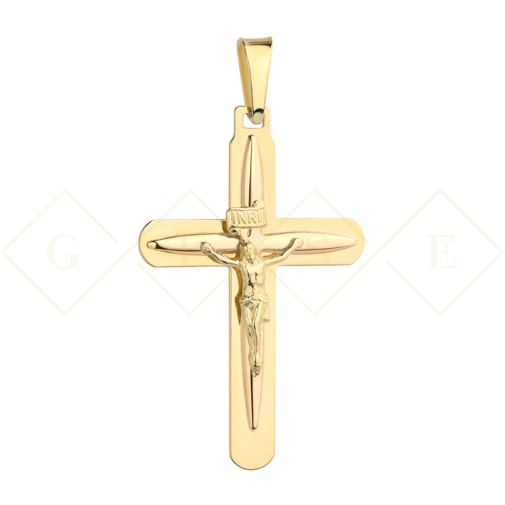 Precyzyjnie wykonany złoty krzyżyk próby 585.