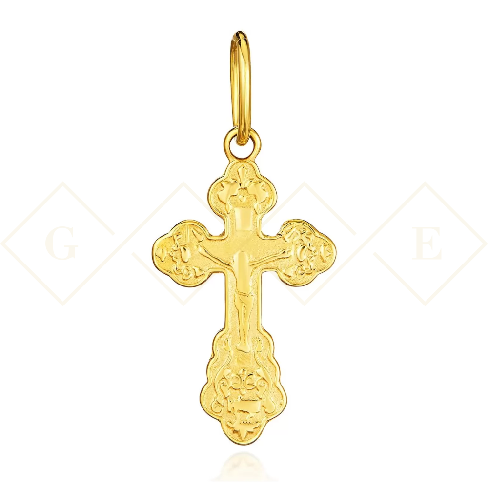 Piękny złoty krzyżyk prawosławny. Krzyżyk zaprojektowany został w formie niedużej zawieszki. Jest to biżuteria o charakterze sakralnym.
