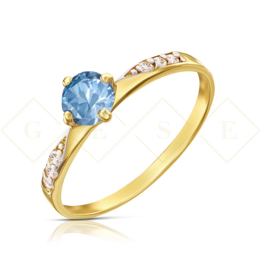 Złoty pierścionek Cyrkonie Only One błękitny kamień pr. 333 3.1545a
