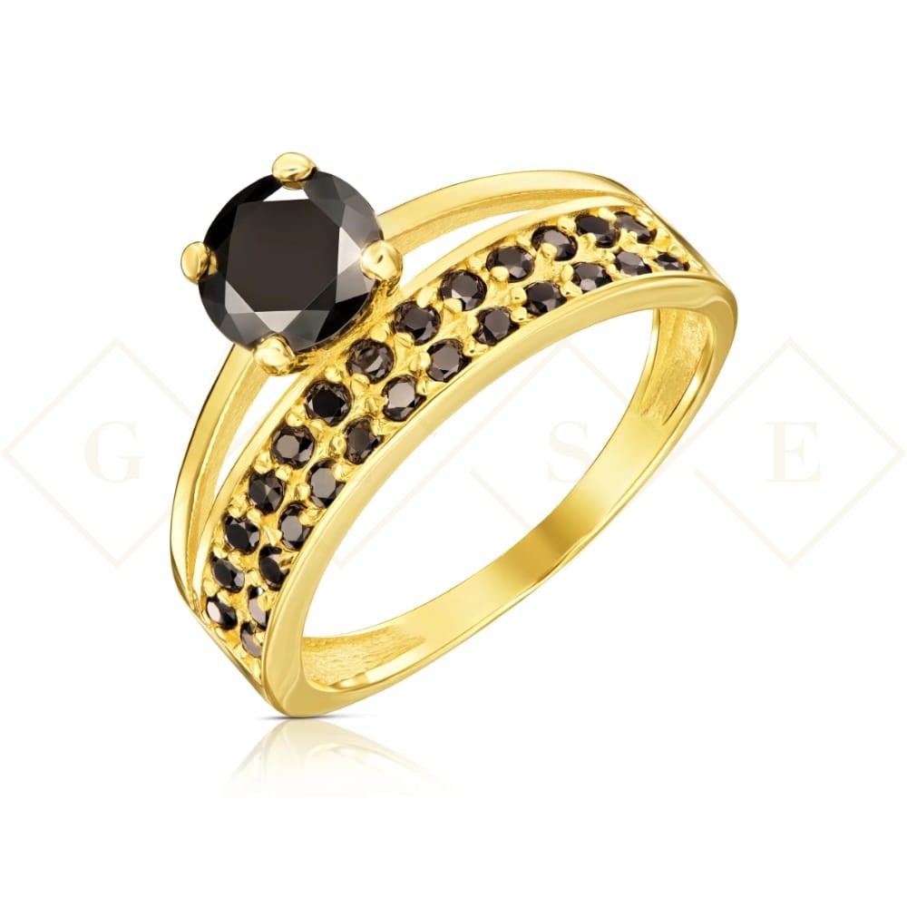 Złoty pierścionek czarne kamienie pr. 333