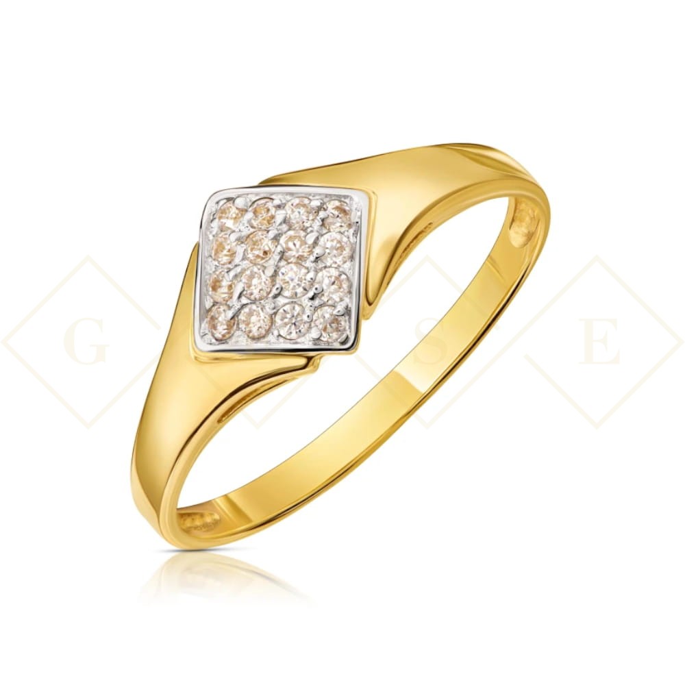 Złoty pierścionek pr. 333 z cyrkoniami kwadrat 2.1296