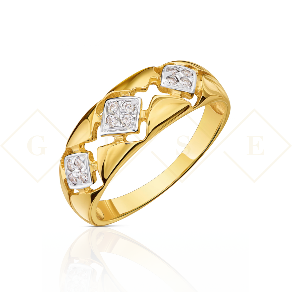 Złoty pierścionek z cyrkoniami trzy kwadraty pr. 333