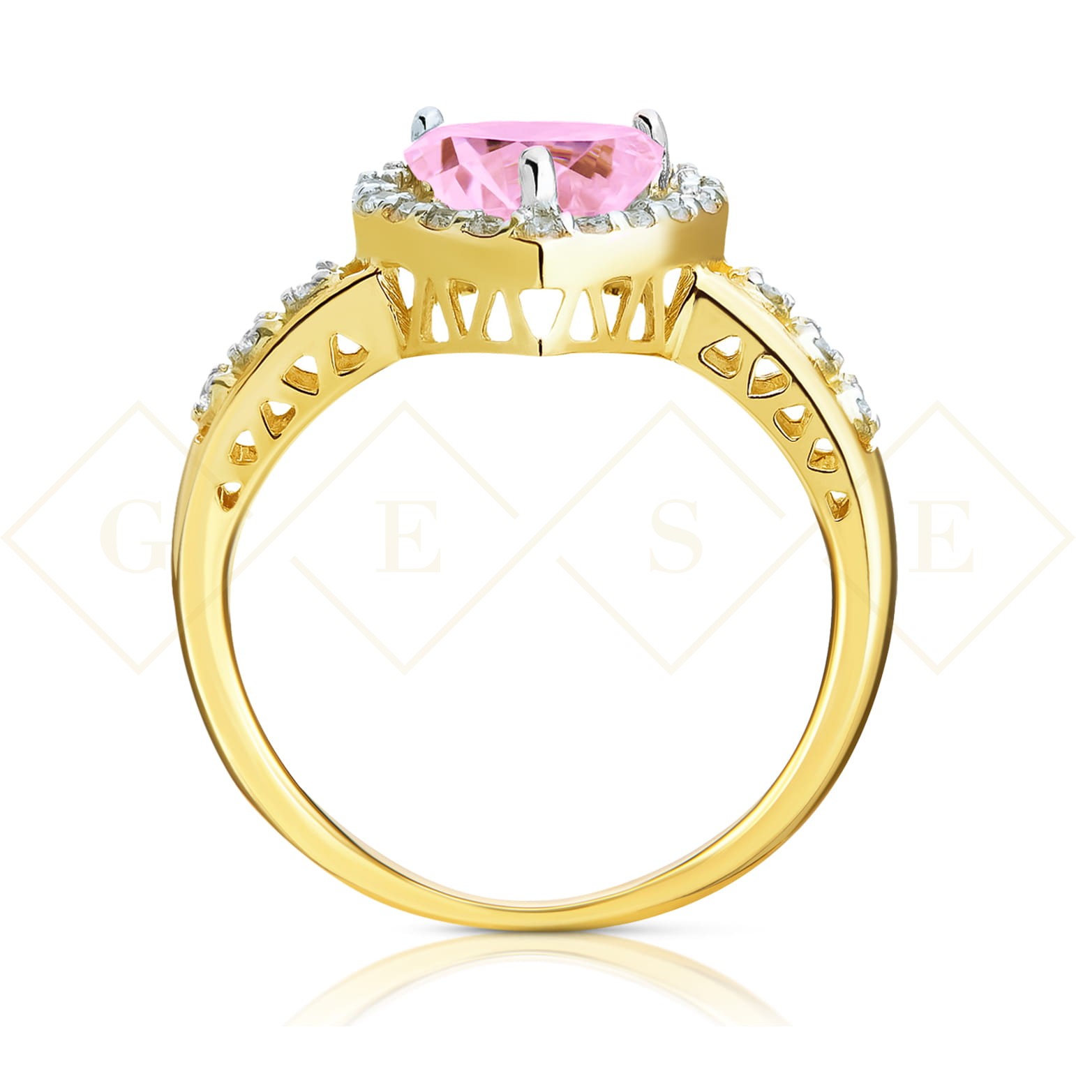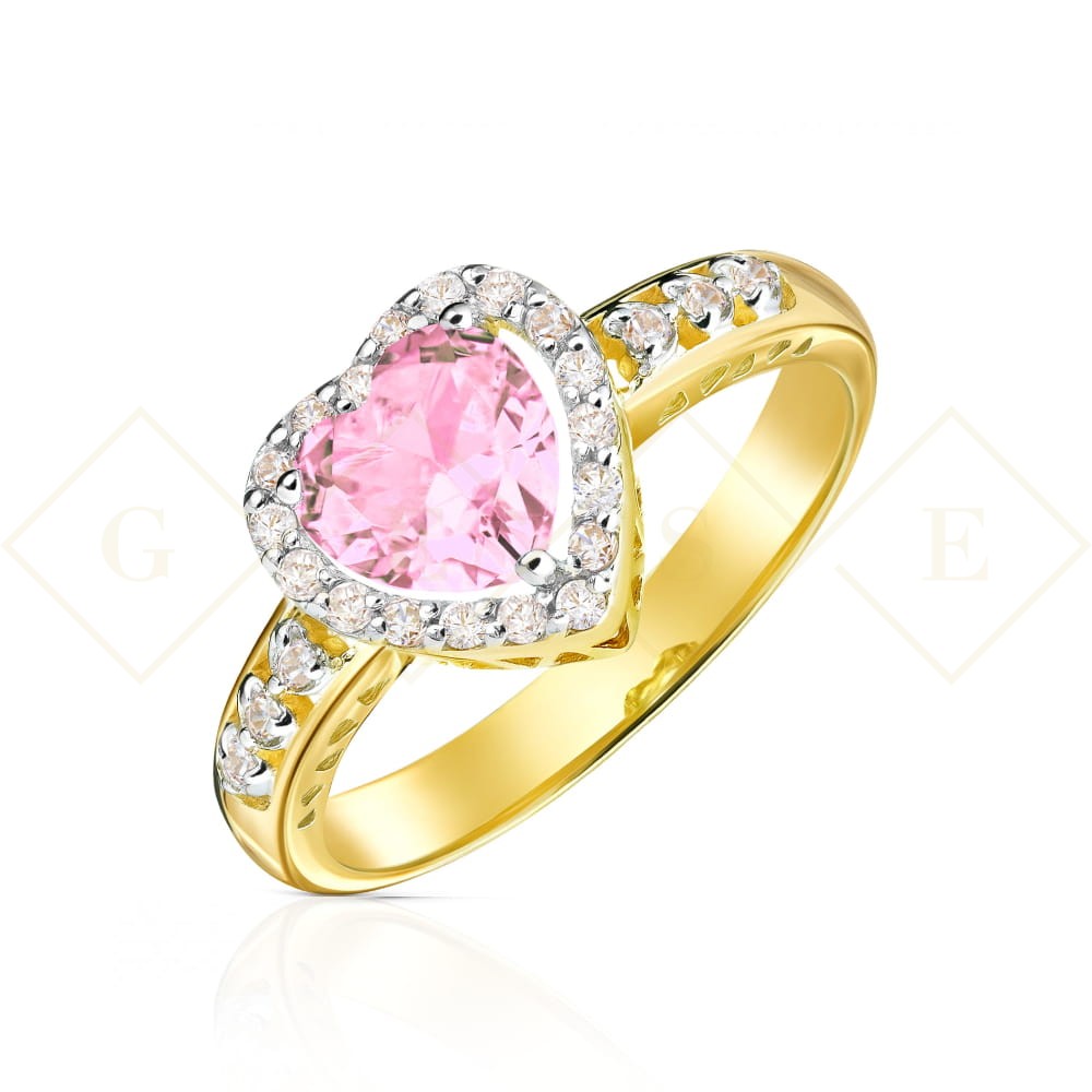 Złoty pierścionek zaręczynowy różowe serce pr. 333