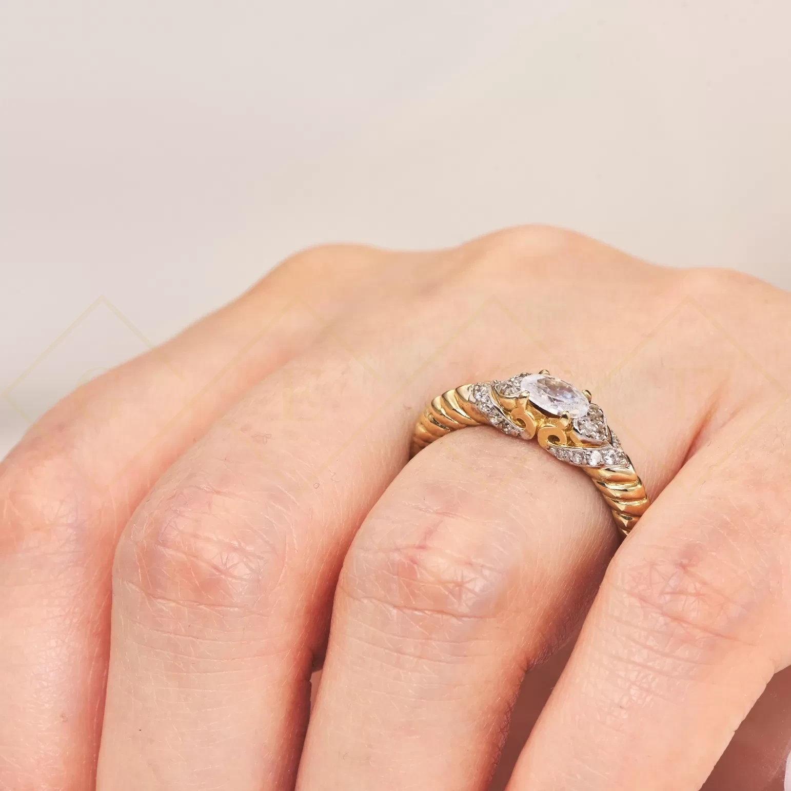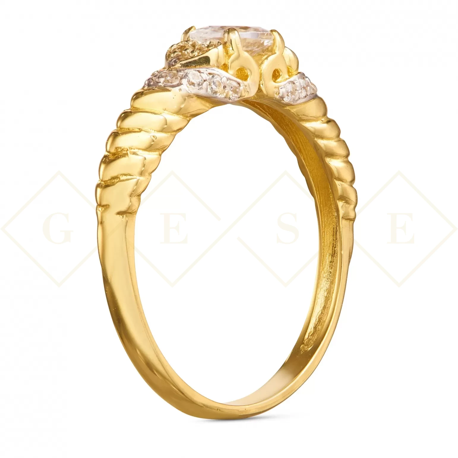 Złoty przeplatany pierścionek Cyrkonie pr. 333 1.883