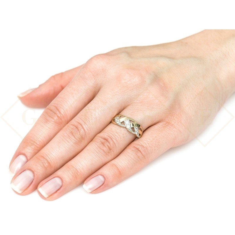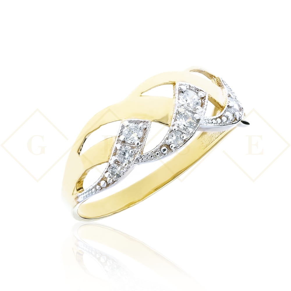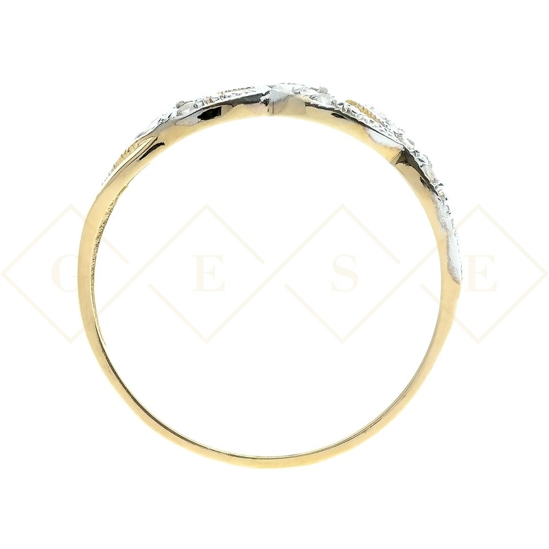 Złoty przeplatany pierścionek pr. 333 cyrkonie 1.23